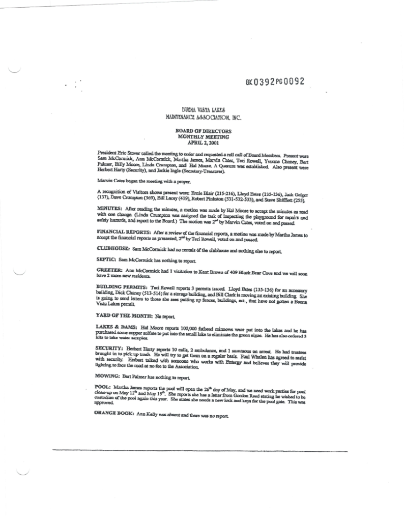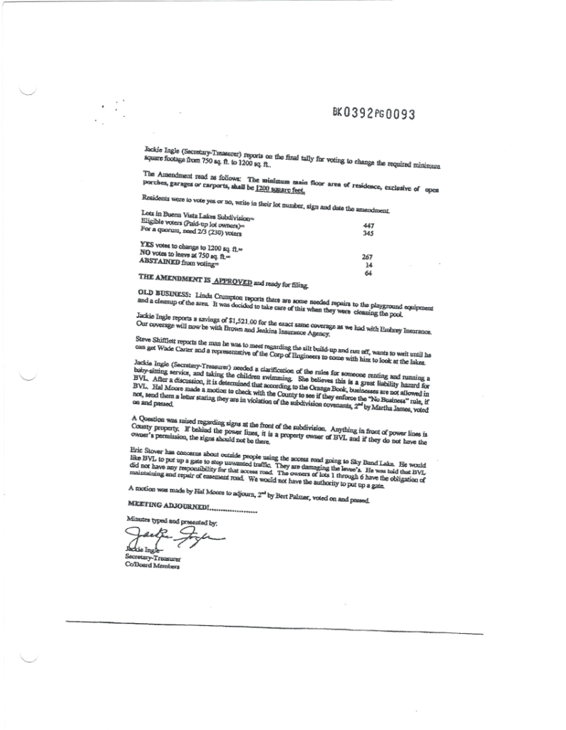 - At the time of the Property Owner renting his/her property, the Renter must be notified of this procedure and the Property Owner of the property to be rented shall furnish the Buena Vista Lakes Maintenance Association Board of Directors a statement by the Renter that he/she understands his/her rights and privileges as a Renter. The Property Owner shall be responsible for the actions of the Renter.